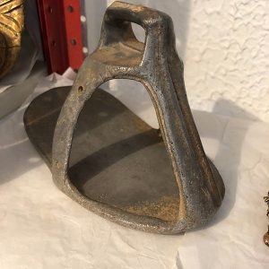ANTIGUE, ESTRIBO, MEDIANO, ESTRIBO METALICO , MOTIVO ESTRIBO METALICO CERRADO CON PUNTA DE LANZA ITALIANA (GUARDIA), ELABORADO EN HIERRO, DIMENSIONES: X X , PESO: GRS