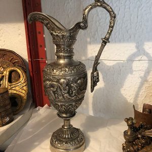 ANTIGUE, JARRA, GRANDE, EN ELECTRO PLATA - DINASTIA MING, MOTIVO JARRA DE VINO EN PLATA CON NI?O EN LA MANIJA , ELABORADO EN ELECTROPLATA, DIMENSIONES: X X , PESO: GRS