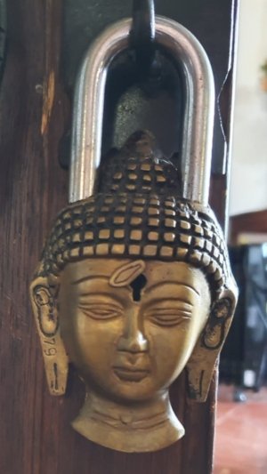 CANDADO ANTIGUO MOTIVO BUDA BRONCE
