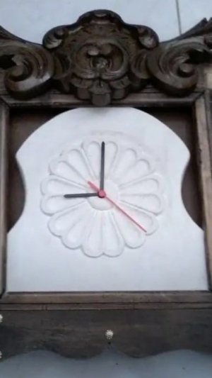 RELOJ DE PARED EN PIEDRA, MARCO MADERA