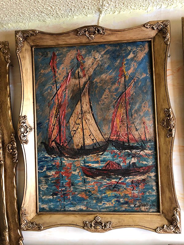 CUADROS, OLEO, GRANDE, C. PISSARRO / 1890 – OLEO SOBRE TELA , MOTIVO 3 VELEROS GRANDES SOBRE EL MAR , ELABORADO EN LIENZO Y MADERA, DIMENSIONES: X X , PESO: GRS