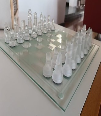 ADORNOS, AJEDREZ, GRANDE, AJEDREZ ACRILICO, MOTIVO AJEDREZ ACRILICO, TABLERO EN VIDRIO, ELABORADO EN ACRILICO Y VIDRIO, DIMENCIONES: X X , PESO: GRS