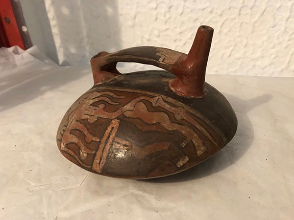 PIEZAS , OTROS, PEQUE?O, EN ARCILLA – CULTURA INDIGENA PERUANA , MOTIVO ALCARRAZA ROJA CON DOS BOQUILLAS 1 PARTIDA, ELABORADO EN ARCILLA, DIMENSIONES: X X , PESO: GRS