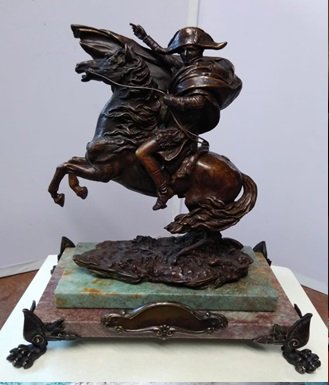 ESCULTURA ECUESTRE, NAPOLEON A CABALLO CRUZANDO LOS ALPES, EN BRONCE BASE MARMOL