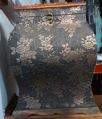 ANTIGUO REVISTERO TIPO COFRE, ELEGANTEMENTE DECORADO