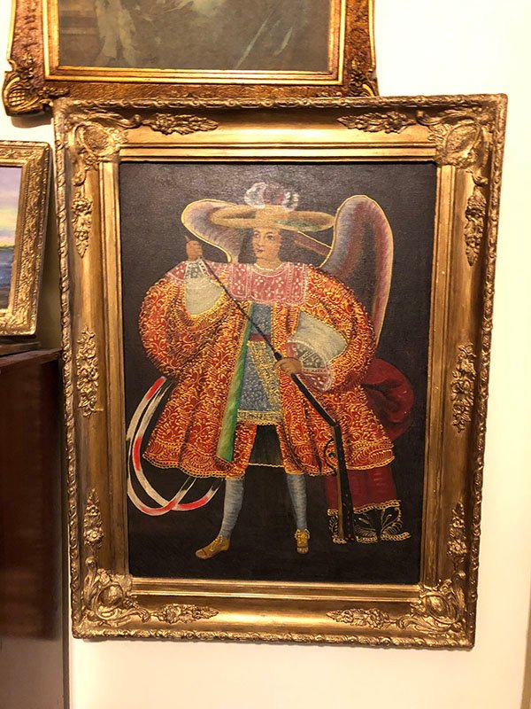 CUADROS, OLEO, GRANDE, OLEO SOBRE TELA , MOTIVO ARCANGEL CON ESCOPETA FLACA Y GORDO, ELABORADO EN LIENZO Y MADERA, DIMENSIONES: X X , PESO: GRS