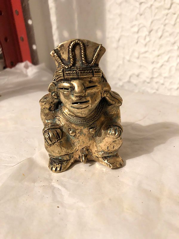 PIEZAS , FIGURA, PEQUE?O, ORO -COBRE-PLATA Y BRONCE – CULTURA CALIMA – CANASTERO, MOTIVO CANASTERO CON SOMBRESO CON CUERDA , ELABORADO EN PD, DIMENSIONES: X X , PESO: GRS