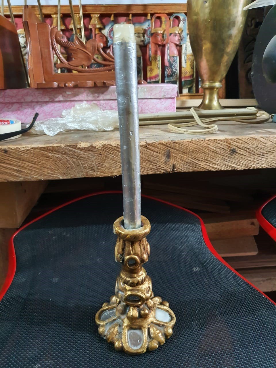 ANTIGUE, CANDELABROS, PEQUE?O, CANDELABRO INCRUSTACIONES EN ESPEJO, MOTIVO ANTIGUO CANDELABRO UNA VELA, CON INCRUSTACIONES EN ESPEJO, ELABORADO EN MADERA, DIMENCIONES: X X , PESO: GRS