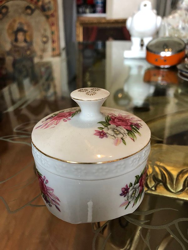 ADORNOS, COFRE JOYERO, PEQUE?O, EN PORCELANA , MOTIVO COFRE CON FLORES ROJAS , ELABORADO EN PORCELANA, DIMENSIONES: X X , PESO: GRS