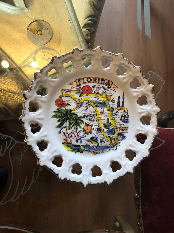 ADORNOS, PLATO DECORA, MEDIANO, EN PORCELANA , MOTIVO DE LA FLORIDA USA, ELABORADO EN PORCELANA, DIMENSIONES: X X , PESO: GRS