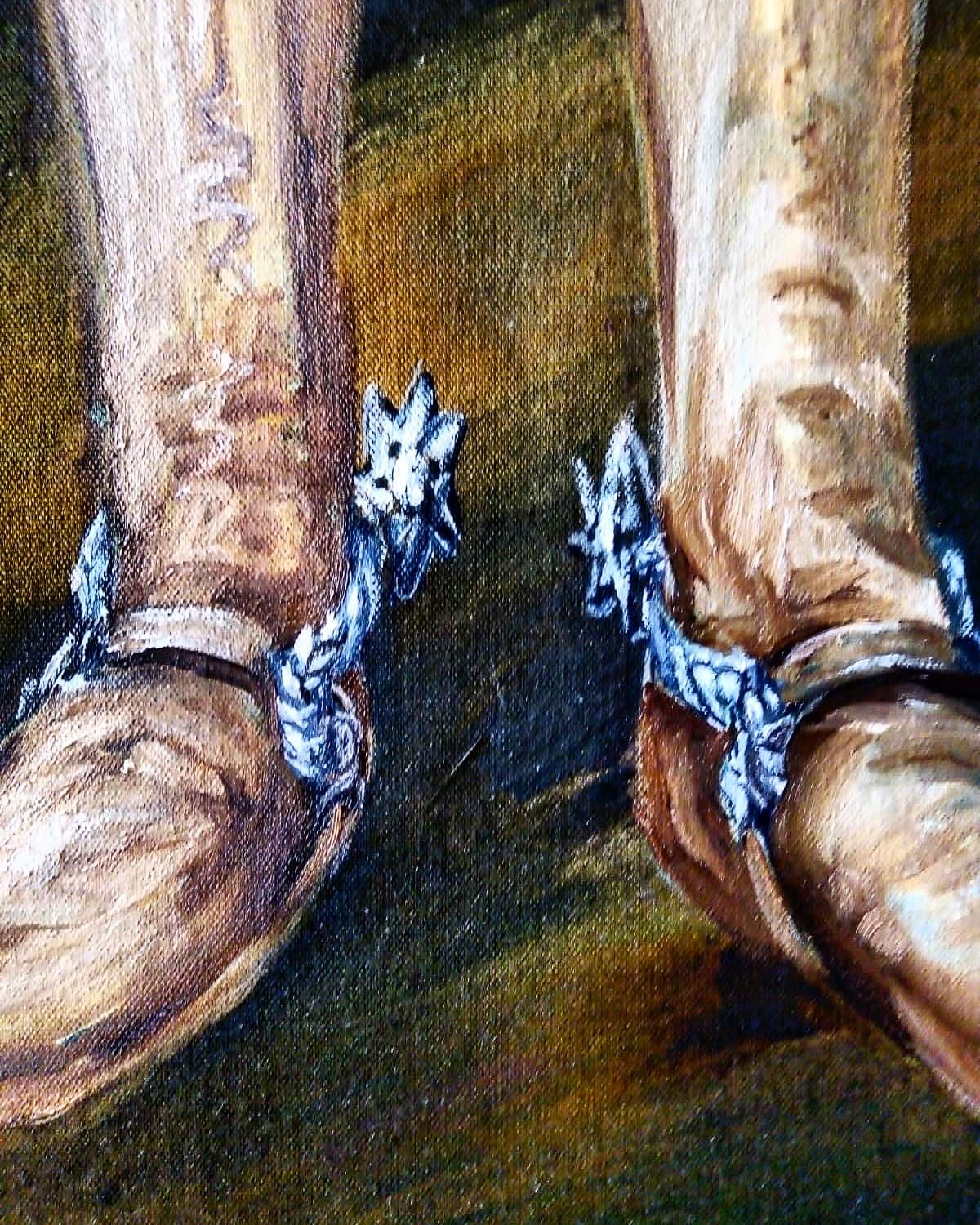 El fondo neutro, de matices oscuros y verdes bronceados, permite que la figura de los personajes respire, cobre protagonismo y se proyecte hacia el espectador con teatralidad controlada. La luz, hábilmente aplicada, destaca los rostros y tejidos, sugiriendo una atmósfera de estudio clásico que remite al tenebrismo de Caravaggio o a los retratos de Velázquez.