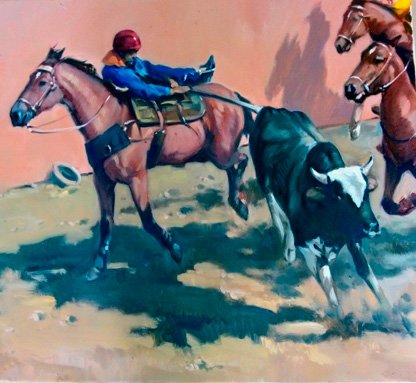 CUADROS, OLEOS, MEDIANO, GUIDALY CASTRO, OLEO SOBRE LIENZO, MOTIVO ESCENA DE COLEO, TORO NEGRO, ELABORADO EN OLEO SOBRE LIENZO, DIMENCIONES: X X , PESO: GRS