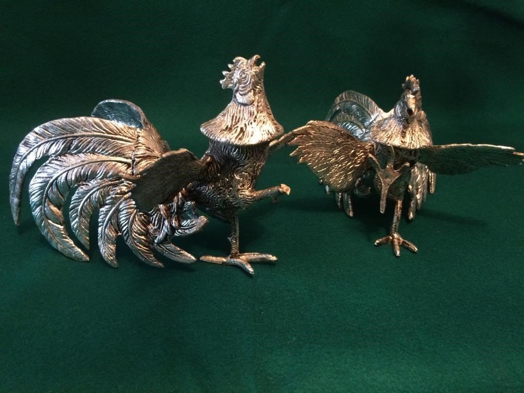 JUEGO DE GALLOS DE PELEA, PLATEADOS