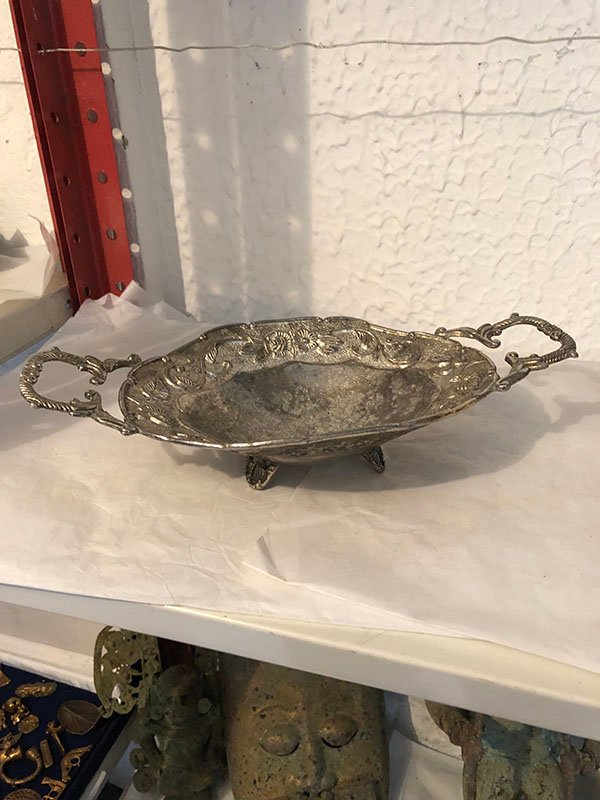 BANDEJA EN PLATA CON DECORACION INTERNA DE FLORES
