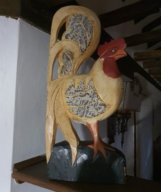 ADORNOS, ANIMALES, MEDIANO, GALLO TALLADO EN MADERA, MOTIVO GALO EN MADERA TALLADO A MANO, ELABORADO EN MADERA, DIMENCIONES: X X , PESO: GRS