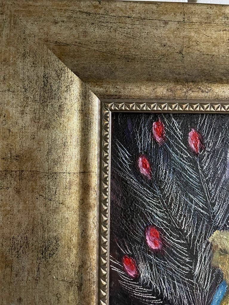 CUADROS, OLEO, GRANDE, VILLEGAS – OLEO SOBRE TELA, MOTIVO GUERRERO Y PAJARO VERDE-AZUL, ELABORADO EN LIENZO, DIMENSIONES EXTERNAS: 60×40 CM, Rp ESTUDIO A LA OBRA DEL ARTISTA.