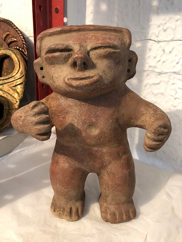 PIEZAS , FIGURAS, MEDIANO, ORO -COBRE-PLATA Y BRONCE – CULTURA CALIMA – CHAMAN , MOTIVO HOMBRE FELIZ CON LAS MANOS PARA ABRAZAR, ELABORADO EN ARCILLA, DIMENSIONES: X X , PESO: GRS