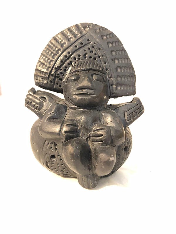PIEZAS , FIGURA, PEQUE?O, EN ARCILLA – CULTURA TAYRONA – PITO UTILIZADO EN LOS BAILES TIPICOS DE LA COMUNIDAD , MOTIVO INDIGENA CON SOMBRERO MANO RODILLA IZQ – DRAGONES EN LAS HOMBRERAS, ELABORADO EN ARCILLA, DIMENSIONES: X X , PESO: GRS