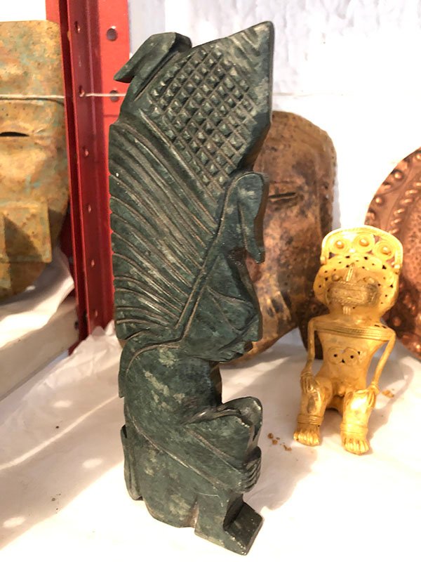 PIEZAS , FIGURAS, MEDIANO, EN JADE , MOTIVO INDIO CHAMAN ORANDO , ELABORADO EN JADE, DIMENSIONES: X X , PESO: GRS