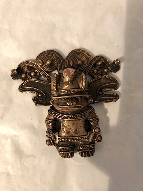 PIEZAS , FIGURAS, PEQUE?O, ORO -COBRE-PLATA Y BRONCE – CULTURA TAYRONA – MU?ECO EN RAMAZON ANTROPOMORFO, MOTIVO INDIO CON CINTURON GRUESO , ELABORADO EN COBRE, DIMENSIONES: X X , PESO: GRS