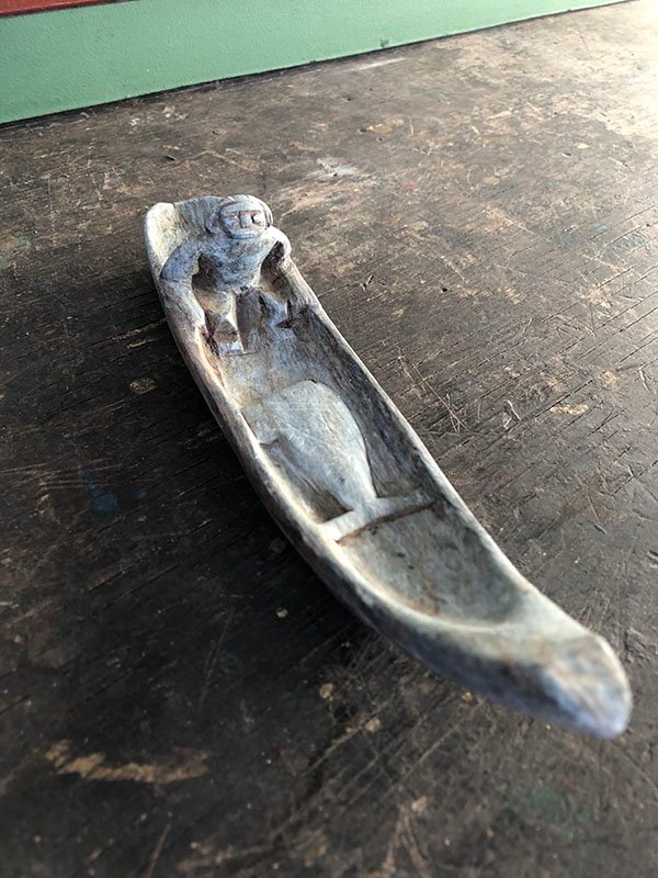 PIEZAS , FIGURAS, MEDIANO, EN JADE , MOTIVO INDIO PESCANDO EN CANOA, ELABORADO EN JADE, DIMENSIONES: X X , PESO: GRS