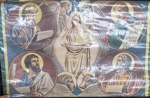 LEYENDAS BIBLICAS PINTADOS EN PAPEL SOBRE TELA JESUS CON ESCRIBAS