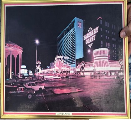 LITOGRAFIA CALLE LAS VEGAS DE NOCHE, ENMARCADA MARCO DORADO EN ALUMINIO