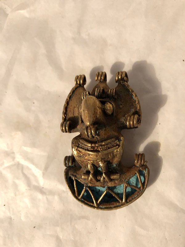 PIEZAS , FIGURAS, PEQUE?O, ORO -COBRE-PLATA Y BRONCE – CULTURA TIERRA DENTRO – ANIMAL, MOTIVO LORO CON BASE EN AGUAMARINA , ELABORADO EN PD, DIMENSIONES: X X , PESO: GRS