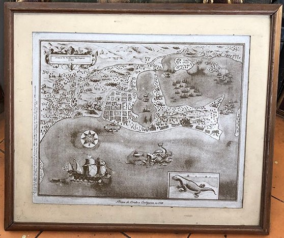 CUADROS, LITOGRAFIA, MEDIANO, EN SEPHIA, MOTIVO MAPA DE CARTAGENA DE INDIAS , ELABORADO EN PAPEL MADERA Y VIDRIO, DIMENSIONES: X X , PESO: GRS
