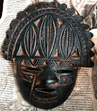 MASCARA INDIGENA EN CERAMICA OJOS RASGADOS PEINADO MEDIA LUNA ABANICO