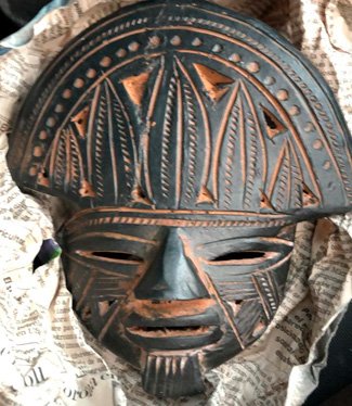 MASCARA INDIGENA EN CERAMICA OJOS RASGAFOS SOMBRERO NAPOLEON Y BARBA