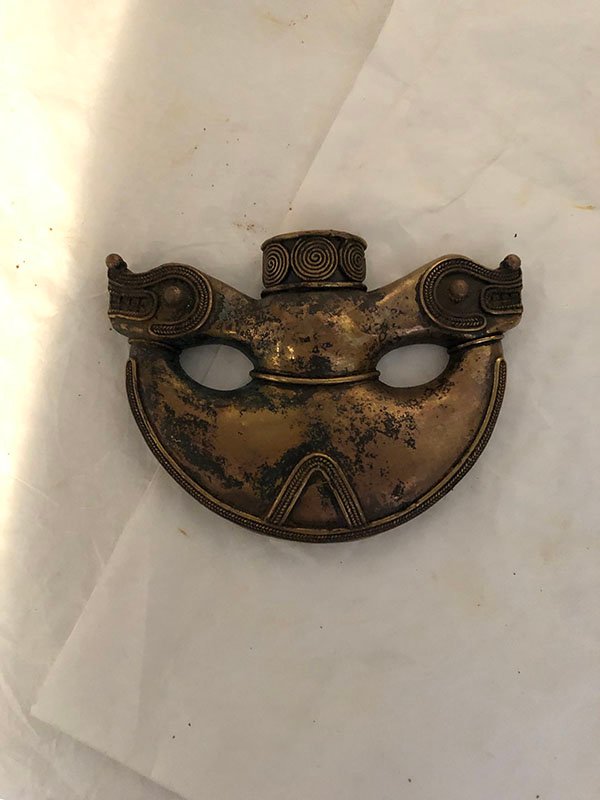 PIEZAS , FIGURAS, PEQUE?O, ORO -COBRE-PLATA Y BRONCE – CULTURA SINU (DE LA COSTA) – BRAZALETE – AMULETO , MOTIVO MASCARA PEQUE?A DORADA, ELABORADO EN PD, DIMENSIONES: X X , PESO: GRS