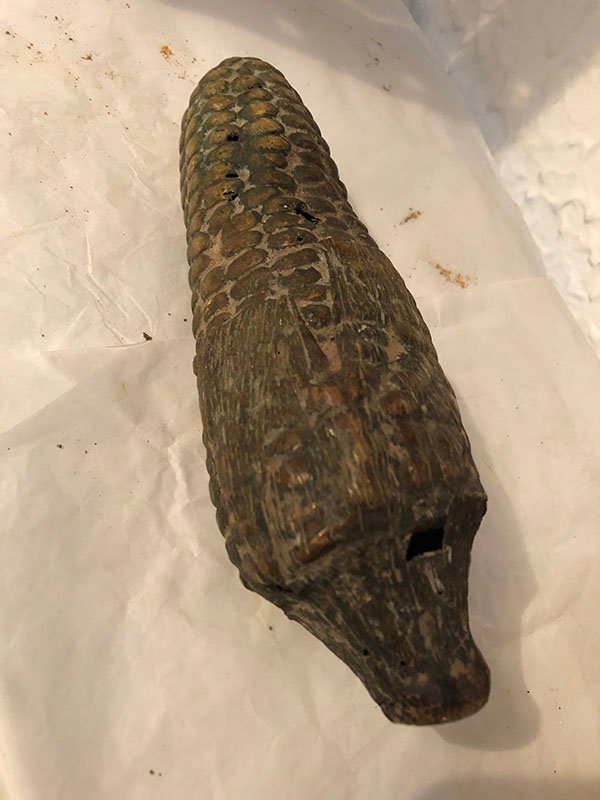 PIEZAS , FIGURA, MEDIANO, ORO -COBRE-PLATA Y BRONCE – CULTURA SAN AGUSTIN HUILA – MAZORCA QUE REPRESENTABA LA COMIDA DE TODO SER VIVO , MOTIVO MAZORCA EN ORO , ELABORADO EN PD, DIMENSIONES: X X , PESO: GRS