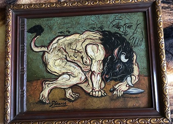 CUADROS, OLEO, PEQUEÑO, PICASSO – PARIS / XXXIII OLEO SOBRE MADERA , MOTIVO MINO TAURO , ELABORADO EN MADERA, DIMENSIONES: X X , PESO: GRS