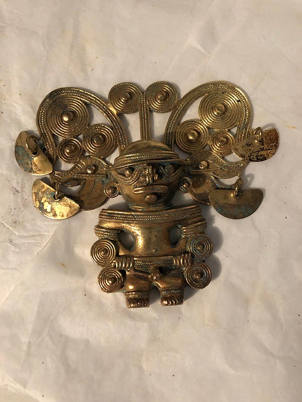 PIEZAS , FIGURAS, MEDIANO, ORO -COBRE-PLATA Y BRONCE – CULTURA TAYRONA – MU?ECO EN RAMAZON, MOTIVO MU?ECO DE CARNAVAL DORADO, ELABORADO EN TUMBAGA, DIMENSIONES: X X , PESO: GRS