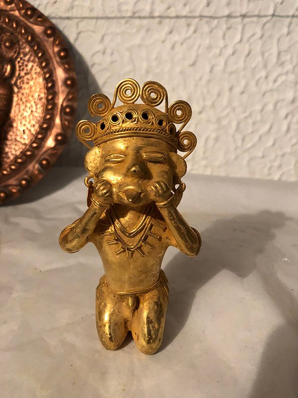 PIEZAS , FIGURA, PEQUE?O, ORO -COBRE-PLATA Y BRONCE – CULTURA SAN AGUSTIN HUILA, MOTIVO MUJER CON DOLOR DE CORDALES ARRODILLADA , ELABORADO EN TUMBAGA, DIMENSIONES: X X , PESO: GRS
