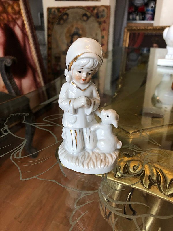 ADORNOS, FIGURA, PEQUE?O, EN PORCELANA , MOTIVO NI?A CON PERRO , ELABORADO EN PORCELANA, DIMENSIONES: X X , PESO: GRS