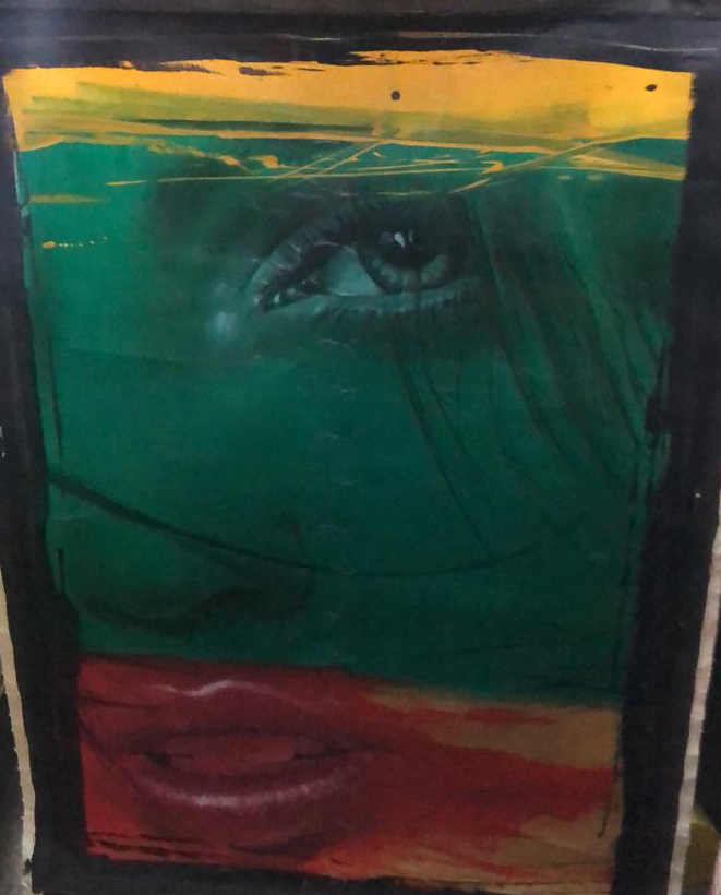 CUADROS, OLEOS, GRANDE, OLEO COBRE YUTE, ALVARO VALCARCEL, MOTIVO FIGURA FEMENINA OJOS CERRADOS, MO?A EN EL CABELLO, COLLAR Y MARIPOSAS VOLANDO, ELABORADO EN OLEO YUTE, DIMENCIONES: X X , PESO: GRS