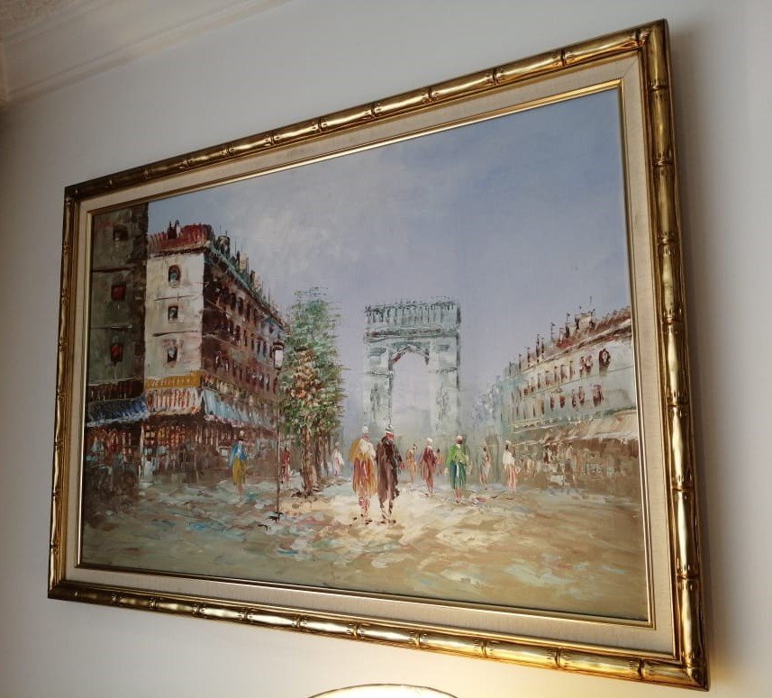 OLEO SOBRE LIENZO, ESCENA PARISINA EL ARCO DEL TRIUNFO