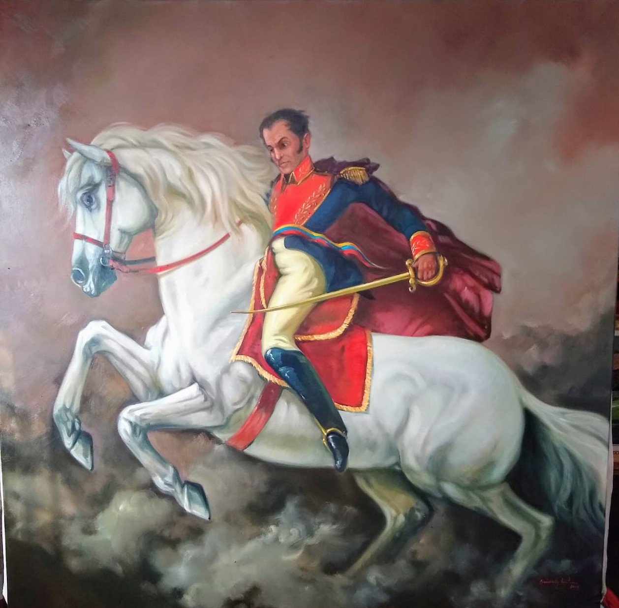 CUADROS, OLEOS, EXTRA GRANDE, OLEO SOBRE LIEZO, GUAYDIL, BOLIVAR MONTANDO A PALOMO, MOTIVO PINTURA BOLIVAR MONTANDO A PICASO, ESGRIMIENDO ESPADA, ELABORADO EN OLEO LIENZO, DIMENCIONES: 150 X 150 X , PESO: GRS