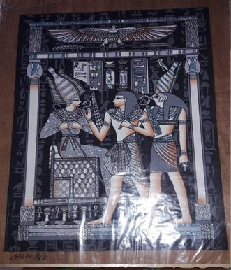 CUADROS, PAPIROS, MEDIANO, PAPIRO, MOTIVO PAPIRO ADQUIRIDO EN EL CAIRO, 54 X 35 CM, ELABORADO EN TINTA SOBRE PAPIRO, DIMENCIONES: X X , PESO: GRS