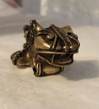 PIEZAS , PIEZA ORFEBR, MINI, ORO -COBRE-PLATA Y BRONCE – CULTURA CALIMA – DIJE, MOTIVO RANA CON BOCA ABIERTA CON COLMILLOS Y DOS BOLAS DE ORO COMO NARIZ, ELABORADO EN PD, DIMENSIONES: X X , PESO: GRS