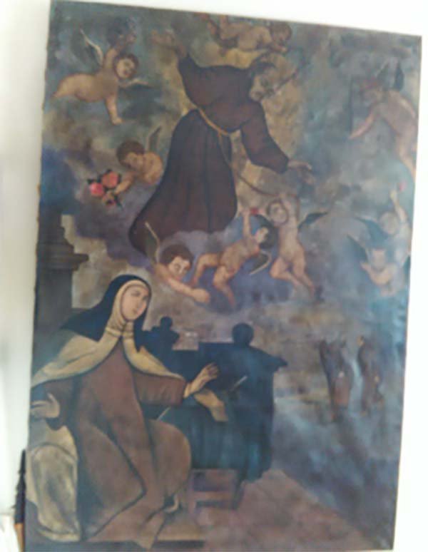 CUADROS, OLEO, GRANDE, OLEO SOBRE LIENZO, MOTIVO SANTOS Y ANGELES VOLANDO, ELABORADO EN LIENZO Y MADERA, DIMENSIONES: X X , PESO: GRS