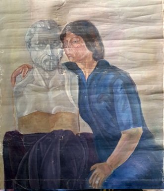 CUADROS, OLEOS, GRANDE, OLEO SOBRE LIENZO, MOTIVO SE¥ORA ABRAZANDO ESCULTURA, ELABORADO EN OLEO SOBRE LIENZO, DIMENCIONES: X X , PESO: GRS