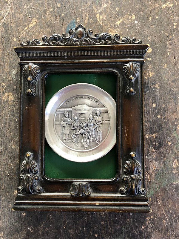 ADORNOS, SOUVENIR, PEQUE?O, MARCO EN MADERA CAF?, MOTIVO SOUVENIR DE KUALA LUMPUR FONDO VERDE , ELABORADO EN MADERA Y METAL, DIMENSIONES: X X , PESO: GRS
