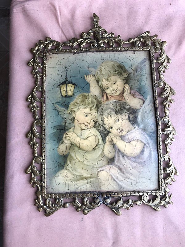 3 ANGELES BEBES CON LAMPARA EXTERIOR MARCO EN BRONCE