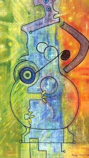 OLEO SOBRE LIENZO, EDGARDO OROZCO, JARRON Y CAMALEON