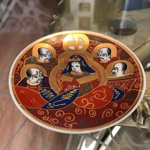 ADORNOS, PLATO DECORA, MEDIANO, PLATO DE LA INDIA, MOTIVO 4 HOMBRES ALREDEDOR DE UNA MUJER , ELABORADO EN CERAMICA, DIMENSIONES: X X , PESO: GRS