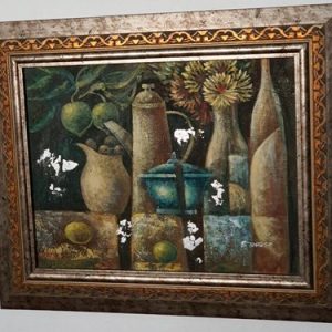 CUADROS, OLEOS, MEDIANO, OLEO SOBRE LIENZO, MOTIVO BODEGON OLEO SOBRE LIEZO, TERMINADO PLATEADO, ENMARCADO DE LUJO, MOTIVO JARRONES, ELABORADO EN OLEO SOBRE LIENZO, DIMENCIONES: X X , PESO: GRS