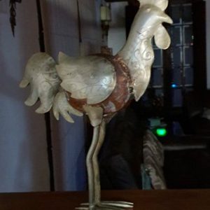 ADORNOS, ANIMALES, MEDIANO, GALLO TERMINADO METALICO, MOTIVO LINDO GALLO BASE MADERA TERMINADO EN PLATA, ELABORADO EN PLATA Y MADERA, DIMENCIONES: X X , PESO: GRS